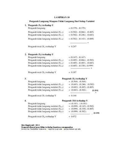 Tingkat persaingan merek dalam pasar global menyebabkan tiap negara yang menghasilkan suatu produk harus memahami penerimaan konsumen terhadap produk lokal yang dihasilkan oleh negara mereka. Tingginya permintaan konsumen terhadap suatu produk tidak hanya ditentukan oleh atribut produk tersebut, tetapi pengaruh merek dari negara asal terhadap suatu produk negara tertentu seperti yang dilakukan oleh Samsung melalui pengaruh budaya Korean Wave yang diterapkannya. Hal tersebut menjadi salah satu strategi yang diterapkan oleh Samsung melalui promosinya dalam gaya hidup konsumen melalui popularitas Korean Wave. Penelitian ini bertujuan untuk (1) mengetahui gambaran dimensi gaya hidup pengguna smartphone Samsung pada komunitas Korea di Bandung, (2) mengetahui gambaran keputusan menggunakan pengguna smartphone Samsung pada komunitas Korea di Bandung, (3) mengetahui temuan mengenai seberapa besar pengaruh gaya hidup terhadap keputusan menggunakan pengguna smartphone Samsung pada komunitas Korea di Bandung. Objek/unit analisis dalam penelitian ini adalah pengguna smartphone Samsung pada komunitas Korea di Bandung. Variabel bebas (X) dalam penelitian ini adalah dimensi gaya hidup dan variabel terikat (Y) pada penelitian ini adalah keputusan menggunakan. Jenis penelitian yang digunakan adalah deskriptif, verifikatif, dan metode yang digunakan adalah explanatory survey dengan teknik simple random sampling, dengan jumlah sampel sebanyak 110 pengguna. Teknik analisa data yang digunakan adalah path analysis dengan alat bantu software komputer SPSS 21.0. Hasil yang diperoleh dalam penelitian menyatakan bahwa dimensi gaya hidup berpengaruh secara simultan terhadap keputusan menggunakan pengguna smartphone Samsung pada komunitas Korea di Bandung sebesar 65%. Sedangkan pengaruh secara parsial menunjukkan bahwa dimensi interest memiliki pengaruh yang lebih besar dibandingkan pengaruh dimensi lainnya seperti activity, opinion dan demoghrapy. Berdasarkan hasil penelitian melalui analisis jalur terdapat pengaruh yang signifikan dari dimensi hidup terhadap keputusan menggunakan pengguna smartphone Samsung pada komunitas Korea di Bandung, yaitu 1) activity, 2) interest, 3) opinion, 4) demoghrapy, Pengaruh kedua variabel ini memiliki pengaruh yang signifikan baik secara simultan maupun secara parsial. Kata kunci: Dimensi Gaya hidup, Keputusan menggunakan Gina Mugniawati (1005624), The Influence of Dimension of Lifestyle Behaviour on Decisions Using (Survey on Community Member Korea Samsung Smartphone Users in Bandung). Guidance of Dr. Lili Adi Wibowo. S.Pd., S.Sos., MM The level of brand competition in the global market led to each country that produces a product must understand consumer acceptance of local products produced by their country. Strong consumer demand for a product is not only determined by the attributes of the product, but the brand influence of country of origin of a product specific country as done by Samsung through the influence of Korean culture wave is applied. It became one of the strategies implemented by Samsung promotion in consumer lifestyles through the popularity of the Korean Wave. The purpose of research are (1) to obtain findings on dimension of lifestyle Samsung smartphone users in the Korean community in Bandung, (2) to obtain findings on making using Samsung smartphone users in the Korean community in Bandung, (3) to obtain discovery regarding how much influence the findings of the dimension of lifestyle on the decision to use Samsung smartphone users in the Korean community in Bandung. Object / unit of analysis in this study is the Samsung smartphone users in the Korean community in Bandung. The independent variable (X) in this study is the dimension of lifestyle and the dependent variable (Y) in this study was the decision to use. This type of research is descriptive, verification, and the method used is explanatory survey with simple random sampling technique, with a total sample of 110 users. Data analysis technique used is path analysis with tools SPSS 21.0 software. The results obtained in the study stated that the dimensions lifestyle simultaneously influence on the decision to use Samsung smartphone users in the Korean community in Bandung by 65%. While the partial effect shows that the dimensions of interest has a greater influence than the influence of other dimensions such as activity, opinion and demoghrapy. Based the results of research through path analysis found a significant effect of dimension of lifestyle behaviour on decision to use Samsung smartphone users in the Korean community in Bandung in this study that, the implementation of dimension of lifestyle behaviour on decision to use in order that 1) activity, 2) interest, 3) opinion, 4)demoghrapy. Influence of these two variables have a significant effect either simultaneously or partialy. Keywords: Dimension of Lifestyle, Decision of Use