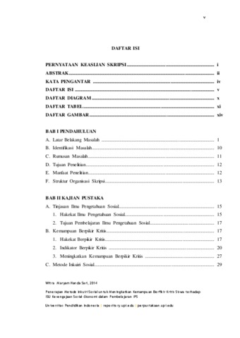 SAri, Witra Maryam Nanda (2014) PENERAPAN METODE INKUIRI SOSIAL UNTUK MENINGKATKAN KEMAMPUAN BERPIKIR KRITIS SISWA TERHADAP ISU KESENJANGAN SOSIAL-EKONOMI DALAM PEMBELAJARAN IPS: Penelitian Tindakan Kelas di Kelas VII C SMPN 5 Kota Bandung. S1 thesis, Universitas Pendidikan Indonesia.