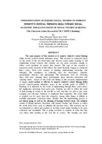 Keywords: Inquiry Social Method, Critical Thinking, Social-Economic Imbalance Issues