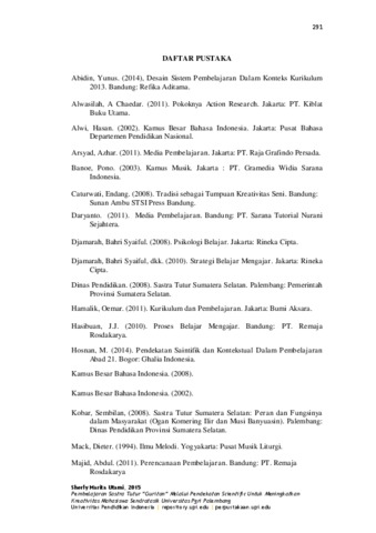 Utami, Sherly Marita (2015) PEMBELAJARAN SASTRA TUTUR “GURITAN” MELALUI PENDEKATAN SCIENTIFIC UNTUK MENINGKATKAN KREATIVITAS MAHASISWA SENDRATASIK UNIVERSITAS PGRI PALEMBANG. S2 thesis, Universitas Pendidikan Indonesia.