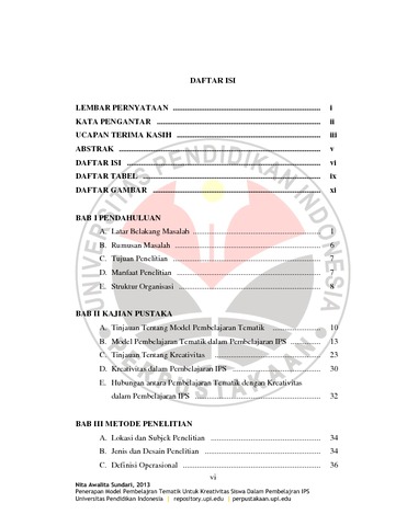 Sundari, Nita Awalita (2013) PENERAPAN MODEL PEMBELAJARAN TEMATIK UNTUK MENINGKATKAN KREATIVITAS SISWA DALAM PEMBELAJARAN IPS: Penelitian Tindakan Kelas di Kelas VIII E SMP Negeri 12 Bandung. S1 thesis, Universitas Pendidikan Indonesia.
