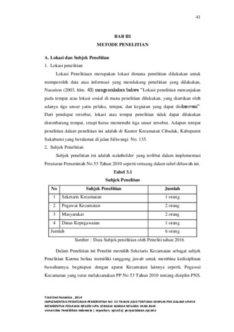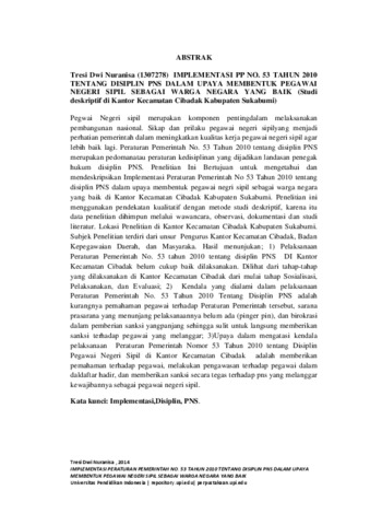 Nuranisa, Tresi Dwi (2017) IMPLEMENTASI PERATURAN PEMERINTAH NO. 53 TAHUN 2010 TENTANG DISIPLIN PNS DALAM UPAYA MEMBENTUK PEGAWAI NEGERI SIPIL SEBAGAI WARGA NEGARA YANG BAIK: Studi Deskriptif di Kantor Kecamatan Cibadak Kabupaten Sukabumi. S1 thesis, Universitas Pendidikan Indonesia.