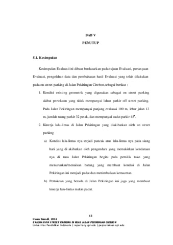 Yunadi, Irwan (2014) EVALUASI ON STREET PARKING DI RUAS JALAN PEKIRINGAN CIREBON. S1 thesis, Universitas Pendidikan Indonesia.