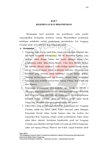 Unus, None (2013) TARI LENGGANG CISADANE DALAM PEMAHAMAN MULTIKULTUR MELALUI PEMBELAJARAN EKSTRAKURIKULER PADA SISWA SMAN 4 KOTA TANGERANG. S2 thesis, Universitas Pendidikan Indonesia.