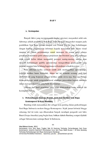 Kata Kunci : Seni Kontemporer, pemahaman guru seni rupa, perkembangan seni Kontemporer Bandung