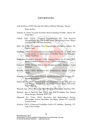 Resnawati, Desti (2013) PEMBELAJARAN TARI DALAM KEGIATAN PENGEMBANGAN DIRI DI SMP NEGERI 1 SOREANG. S1 thesis, Universitas Pendidikan Indonesia.