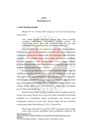 Komarudin, Rudy (2013) DAMPAK SERTIFIKASI TERHADAP KINERJA GURU PENDIDIKAN KEWARGANEGARAAN DI KOTA BANDUNG. S1 thesis, Universitas Pendidikan Indonesia.