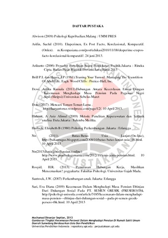 Septian, Mochamad Dinanjar (2013) GAMBARAN TINGKAT KECEMASAN PERAWAT MENGHADAPI PENSIUN DI RSUD SUMEDANG. D3 thesis, Universitas Pendidikan Indonesia.