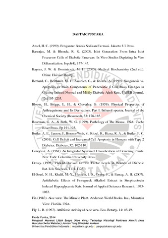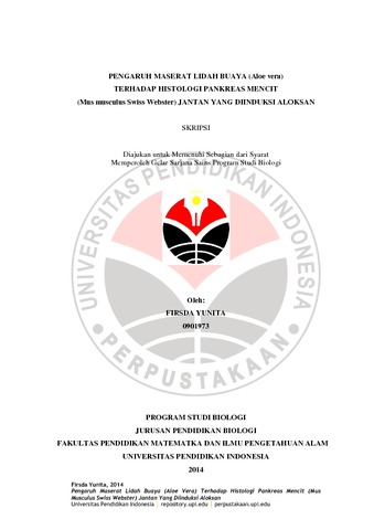 Yunita, Firsda (2014) PENGARUH MASERAT LIDAH BUAYA (ALOE VERA) TERHADAP HISTOLOGI PANKREAS MENCIT (MUS MUSCULUS SWISS WEBTER) JANTAN YANG DIINDUKSI ALOKSAN. S1 thesis, Universitas Pendidikan Indonesia.