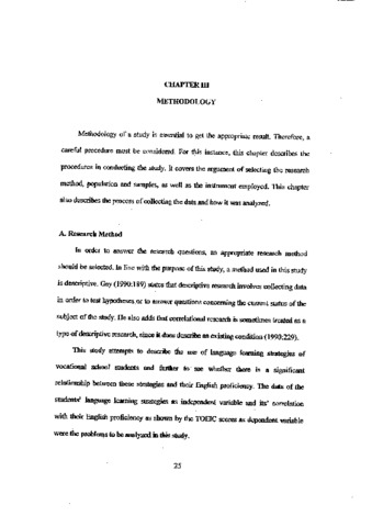 The main objectives of this study were likely to have a better understanding of how the students learn English language in vocational school, to describe their English proficiency as indicated by TOEIC scores and to find out the correlation between their strategies and English proficiency.